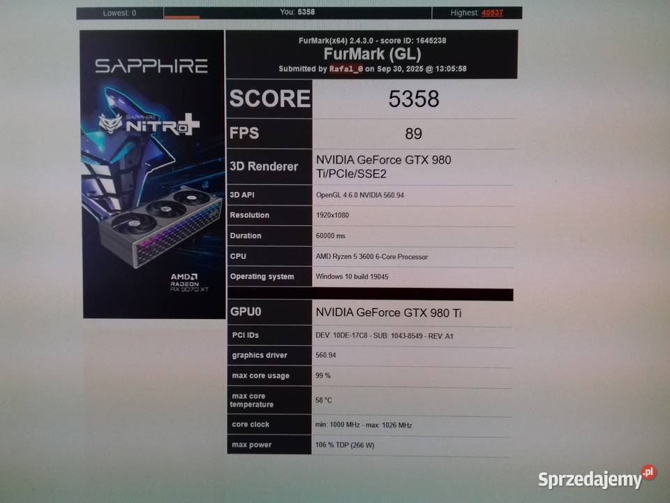 Uzyskała 5358 punktów, przy teście o parametrch: FHD, FullScren, Display OSI, Benchmark P1080