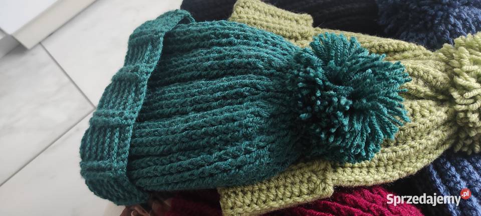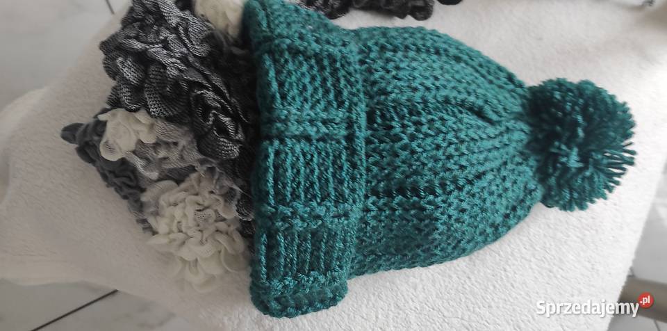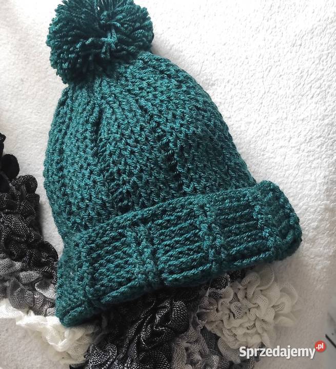 Czapka ręcznie zrobiona. Ciemno zielona.