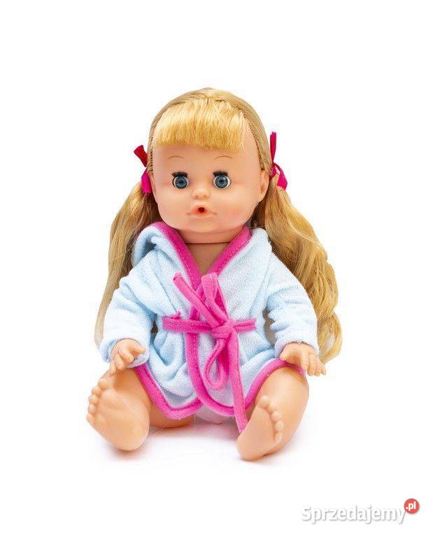 Piękne, długie włosy to z pewnością atuty tej uroczej lali. Lalka o wysokości około 31 cm, ubrana jest w uroczy szlafroczek i doskonale będzie prezentowała się w ramionach każdej dziewczynki. Dzięki funkcjom dźwiękowym lalka potrafi mówić (6 dźwięków) a dodatkowo pije i siusia. Do zestawu dołączone są: