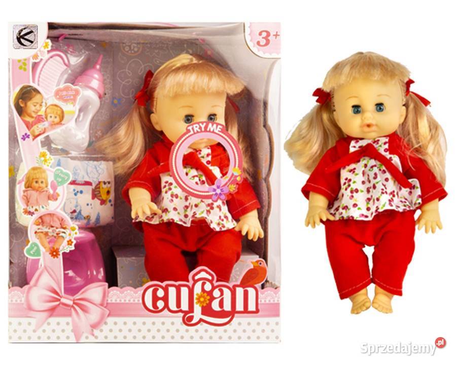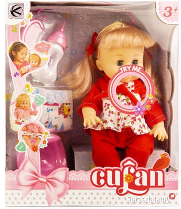 Piękne, długie włosy to z pewnością atuty tej uroczej lali. Lalka o wysokości około 28 cm, ubrana jest w uroczy czerwony komplecik, doskonale będzie prezentowała się w ramionach każdej dziewczynki. Dzięki funkcjom dźwiękowym zabawa jest jeszcze przyjemniejsza, a dodatkowo zamyka oczka, pije i siusia. Do zestawu dołączone są: