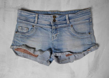 …cm x 2 - szerokość nogawki 30 cm x 2 Po 2 kieszenie z przodu i z tyłu. Zapinane na zamek. Stan spodenek bardzo…