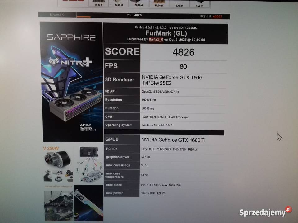 Uzyskała 4826 punktów, przy teście o parametrch: FHD, FullScren, Display OSI, Benchmark P1080