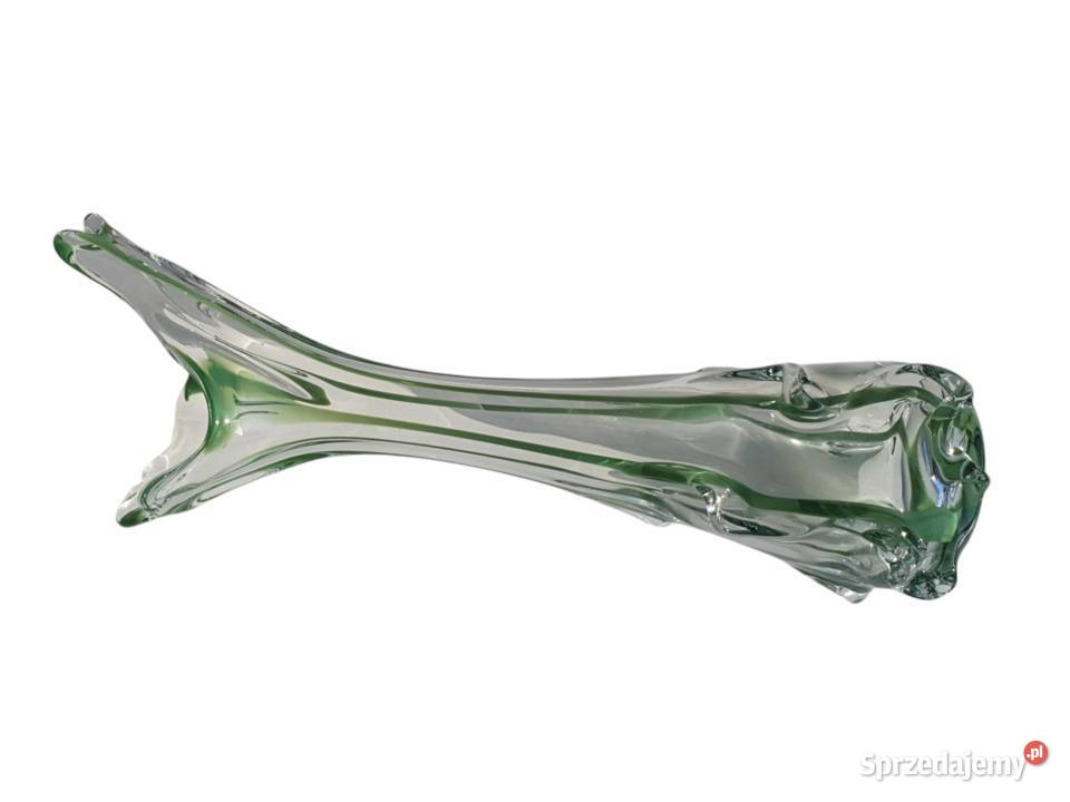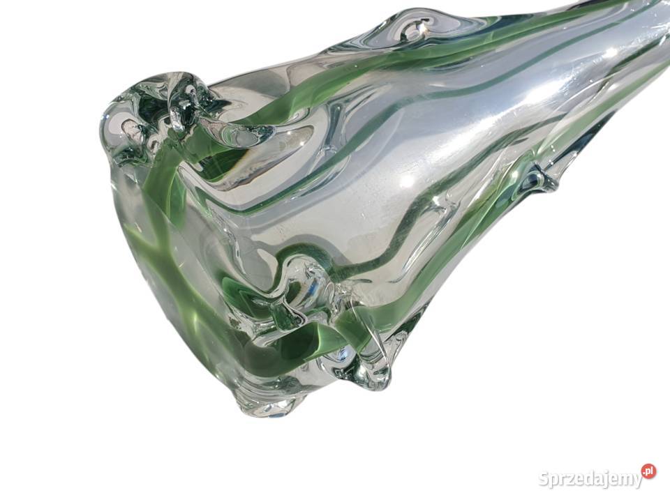 Na sprzedaż oferujemy piękny, duży wazon wykonany z grubego szkła artystycznego, pochodzący z lat 50/60. Jest to prawdopodobnie wyrób hut szkła z dawnej Czechosłowacji, które słynęły z oryginalnych form i najwyższej jakości rzemiosła.