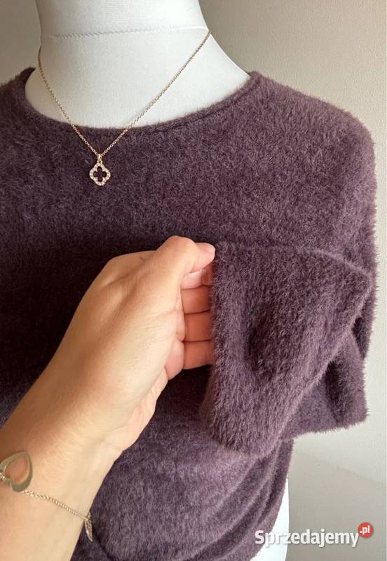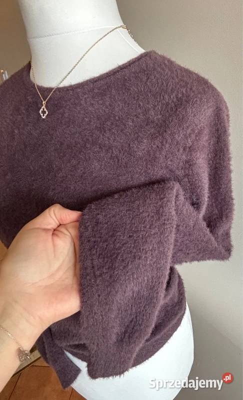 Damski sweterek w głębokim, jagodowym odcieniu ciemnego fioletu to idealny towarzysz chłodniejszych dni. Jest niezwykle miękki, przyjemny w dotyku – nie gryzie, nie drapie, po prostu otula jak ulubiony koc.