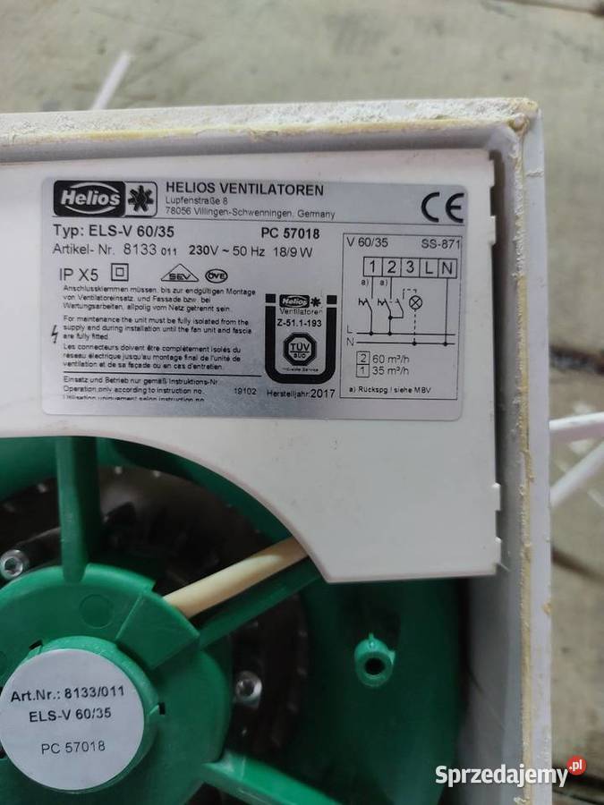 Sprzedam wentylator helios elsv dwubiegowy,wyczyszczony,w pełni sprawny.sprzedaje z powodu wymiany na większy.